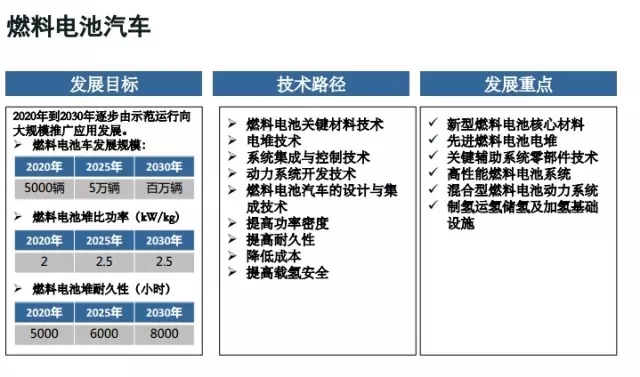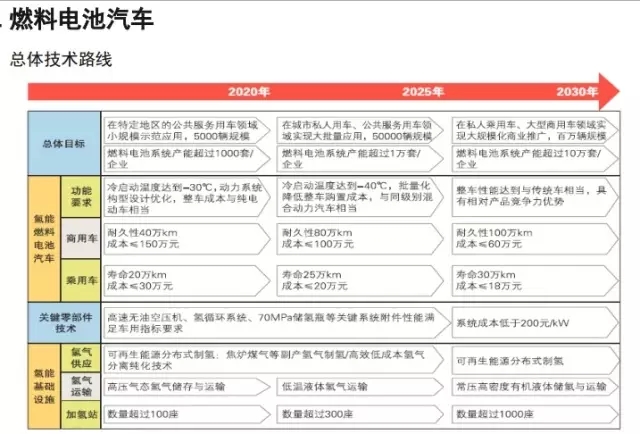 氫燃料電池汽車技術(shù)路線以實(shí)現(xiàn)氫燃料電池汽車產(chǎn)業(yè)化為目標(biāo),開展燃料電池系統(tǒng)、燃料電池堆及材料、車載儲氫與加氫站等關(guān)鍵產(chǎn)業(yè)環(huán)節(jié)技術(shù)與產(chǎn)品攻關(guān)、突破核心技術(shù)、提高性能并進(jìn)一步減低成本,建立并完善燃料電池關(guān)鍵技術(shù)及產(chǎn)業(yè)鏈,燃料電池乘用車與商用車具有較強(qiáng)市場競爭力并實(shí)現(xiàn)全面產(chǎn)業(yè)化。