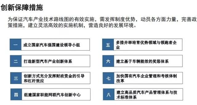 汽車產(chǎn)業(yè)規(guī)模大,關(guān)聯(lián)行業(yè)多,且是眾多產(chǎn)業(yè)技術(shù)創(chuàng)新的集合體。有效實(shí)施汽車產(chǎn)業(yè)技術(shù)路線圖,推動汽車產(chǎn)業(yè)由大變強(qiáng),必須發(fā)揮制度優(yōu)勢,動員各方面力量,完善政策措施,建立靈活高效的實(shí)施機(jī)制,營造良好的發(fā)展環(huán)境。