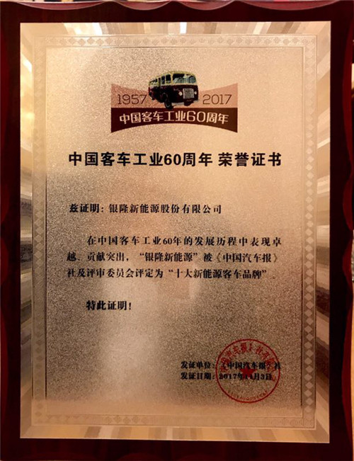 中國客車工業(yè)60周年 銀隆新能源斬獲大獎