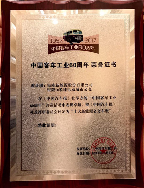 中國客車工業(yè)60周年 銀隆新能源斬獲大獎