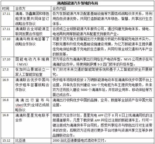 近期,滴滴在新能源汽車(chē)領(lǐng)域布局頻頻。11月14日,滴滴、協(xié)鑫與綠色租賃聯(lián)盟在新能源汽車(chē)及配套基礎(chǔ)設(shè)施等方面結(jié)成戰(zhàn)略伙伴關(guān)系。11月1日,滴滴創(chuàng)始人程維透露,滴滴聯(lián)合全球能源互聯(lián)網(wǎng)發(fā)展合作組織合資成立全球新能源汽車(chē)服務(wù)公司。