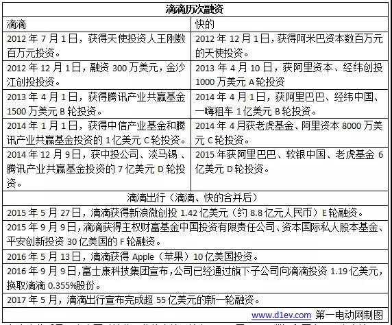 在滴滴背后是眾多中國(guó)科技業(yè)巨頭的支持,其中包括阿里巴巴、騰訊和百度,而滴滴甚至還吸引到了大洋彼岸的蘋(píng)果公司對(duì)其進(jìn)行投資。據(jù)不完全統(tǒng)計(jì),滴滴自成立五年來(lái)已獲得15次融資,估值或已突破500億美元(3500億人民幣)。