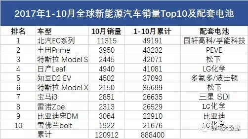 原標(biāo)題:前10月全球銷量Top10的電動汽車 用了誰的電池?