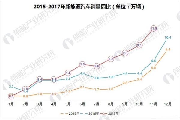 從產(chǎn)銷(xiāo)規(guī)模來(lái)看,我國(guó)新能源汽車(chē)在全球市場(chǎng)的比重已超過(guò)50%;據(jù)前瞻產(chǎn)業(yè)研究院統(tǒng)計(jì)數(shù)據(jù)顯示,2017年1-11月,新能源汽車(chē)產(chǎn)銷(xiāo)分別完成63.9萬(wàn)輛和60.9萬(wàn)輛,同比分別增長(zhǎng)49.7%和51.4%。保守估計(jì),今年中國(guó)新能源汽車(chē)的產(chǎn)銷(xiāo)會(huì)達(dá)到70萬(wàn)輛左右,截止2017年保有量將會(huì)突破170萬(wàn)輛左右。