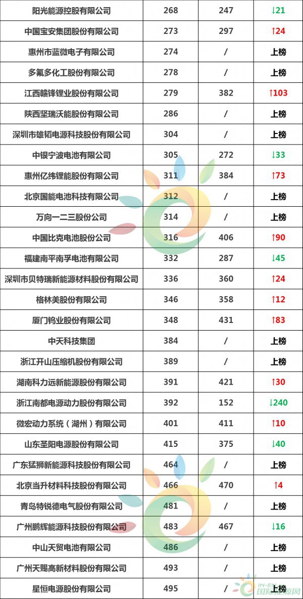 500強儲能榜:天能、寧德、銀隆、雙登、陽光電源等50家企業(yè)入榜,天能再次折桂!