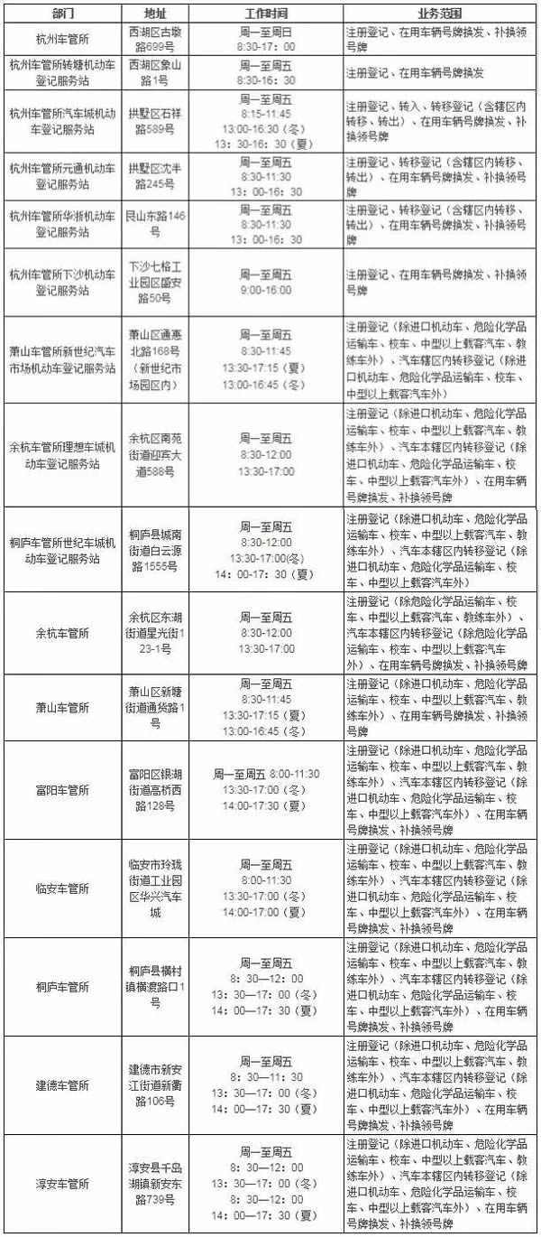杭州市車(chē)管所各機(jī)動(dòng)車(chē)登記服務(wù)站、縣(市、區(qū))所負(fù)責(zé)辦理本轄區(qū)內(nèi)的核發(fā)換發(fā)新能源汽車(chē)號(hào)牌業(yè)務(wù)。