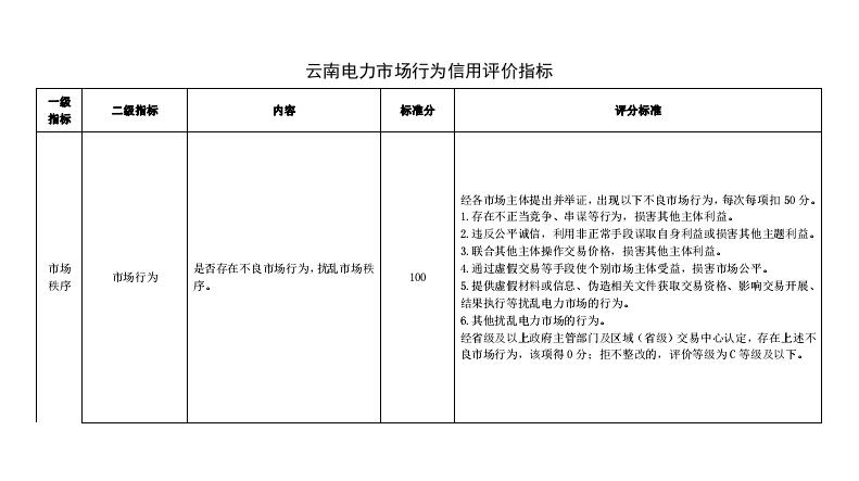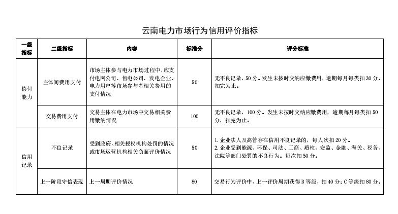 云南征求《云南電力市場主體交易行為信用評價機制(試行)》意見建議