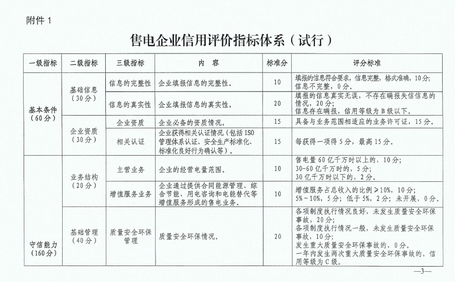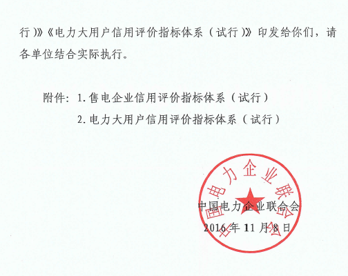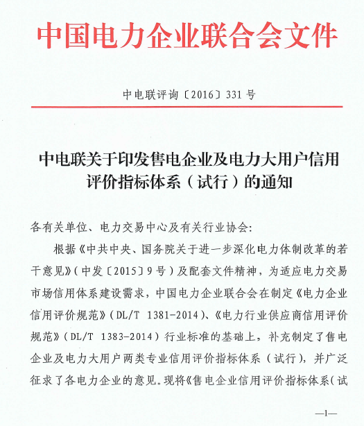 中電聯(lián)印發(fā)售電企業(yè)及電力大用戶信用評價指標(biāo)體系(試行)