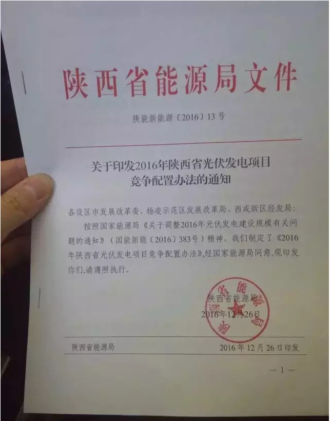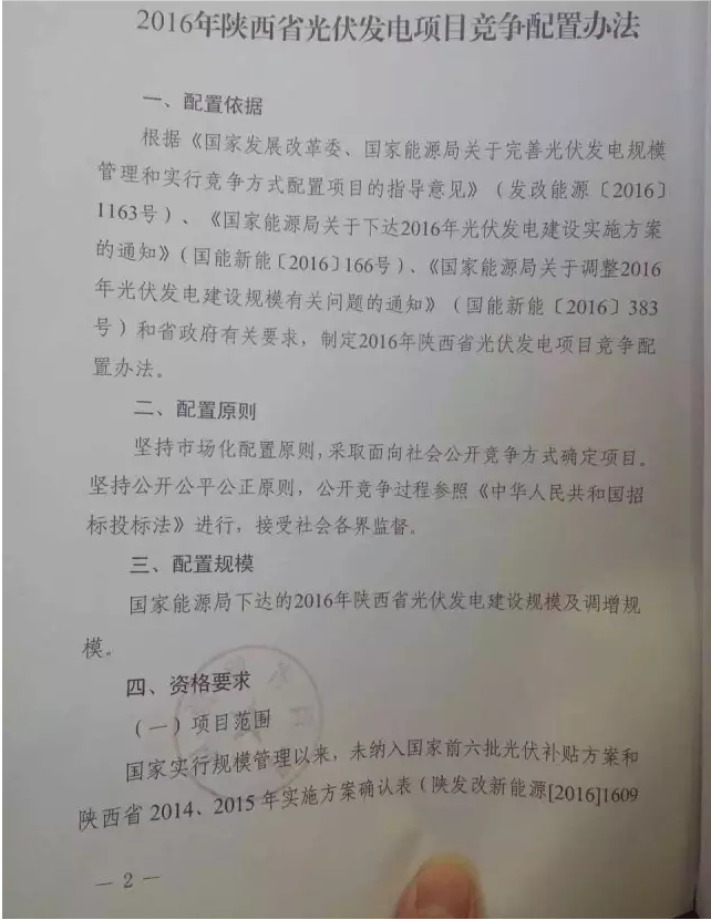 關(guān)于印發(fā)2016年陜西省光伏發(fā)電項(xiàng)目競(jìng)爭(zhēng)配置辦法的通知