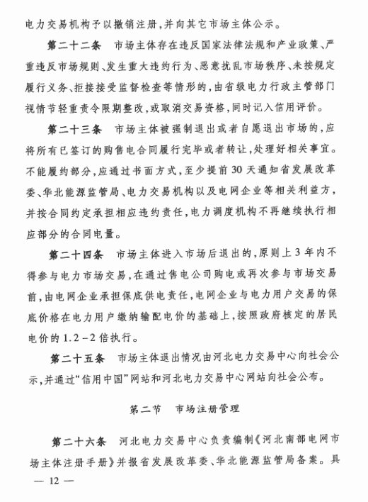 河北省發(fā)改委日前發(fā)布了《河北南部電網(wǎng)電力中長(zhǎng)期交易規(guī)則(暫行)》,規(guī)則適用于河北南部電網(wǎng)現(xiàn)階段開(kāi)展的電力直接交易、跨省跨區(qū)交易、合同...