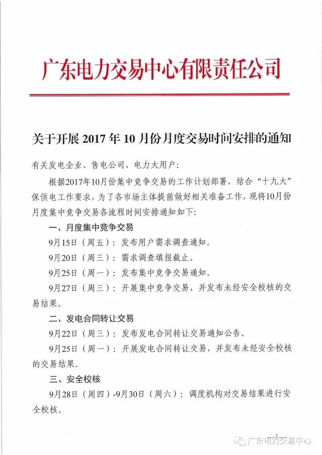 10月份廣東電力交易中心將舉行兩次集中競爭交易,分別是9月27日的月度集中競爭交易和9月25日的發(fā)電合同轉(zhuǎn)讓交易,詳情如下:
