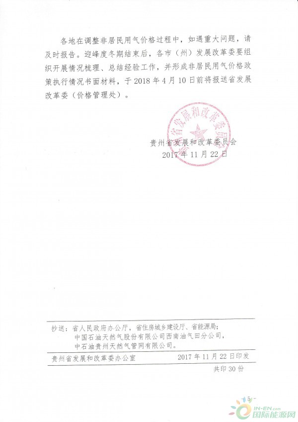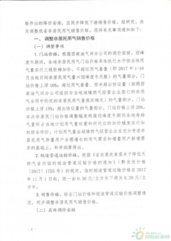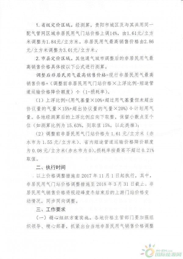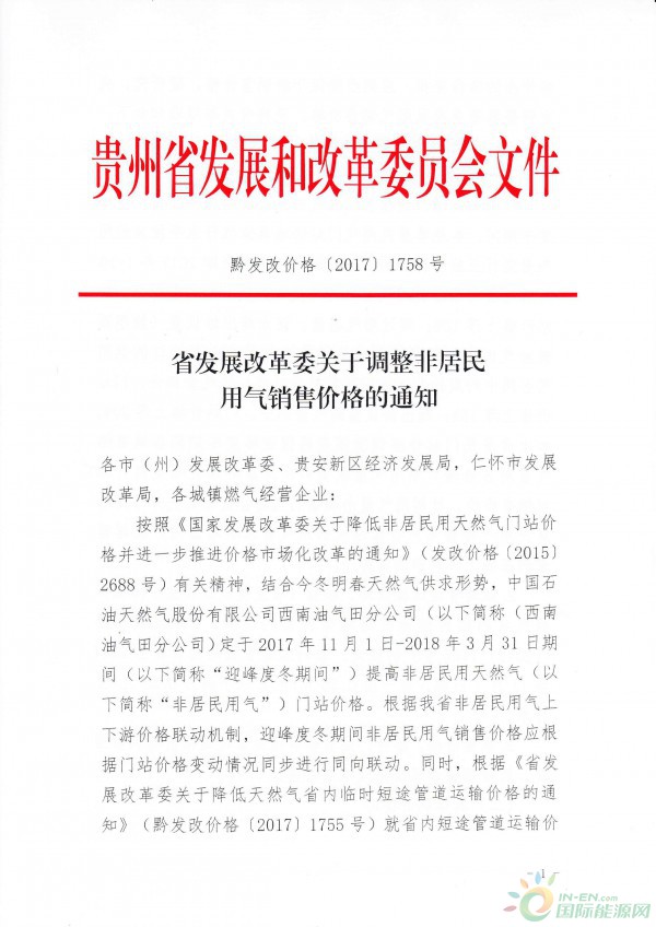 貴州省發(fā)展改革委關(guān)于調(diào)整非居民用氣銷售價(jià)格的通知
