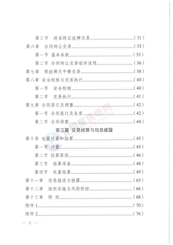 實施細則共3篇9章186條,第一篇為“交易準備”,從第1章到第2章,涵蓋了總則、市場注冊;第二篇為“交易實施”,從第3章到第9章,按交易品種逐一明確了交易組織的原則、流程、時間安排等內(nèi)容,并給出了安全校核、合同簽訂的操作步驟;第三篇為“交易結(jié)算與信息披露”,從第10章到第13章,將山西規(guī)則中有關(guān)結(jié)算的文字內(nèi)容翻譯為具體的計算公式,基本具備了編制結(jié)算程序的條件。