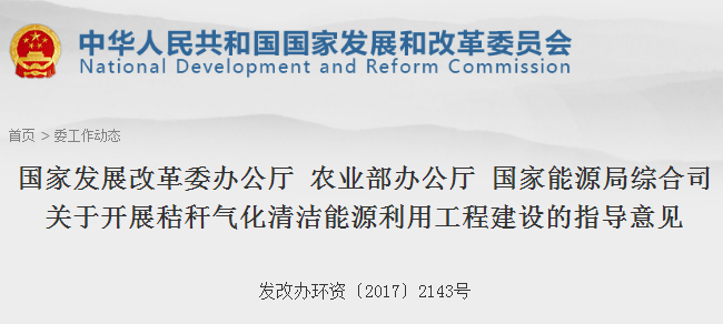 國家發(fā)改委、能源局印發(fā)《關(guān)于開展秸稈氣化清潔能源利用工程建設(shè)的指導(dǎo)意見》