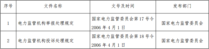 根據(jù)投訴舉報處理工作實際情況,并考慮到適用主體、調(diào)整對象均發(fā)生了變化,現(xiàn)決定宣布失效《電力監(jiān)管機構(gòu)舉報處理規(guī)定》(國家電力監(jiān)管委員會令第17號)、《電力監(jiān)管機構(gòu)投訴處理規(guī)定》(國家電力監(jiān)管委員會令第18號)。
