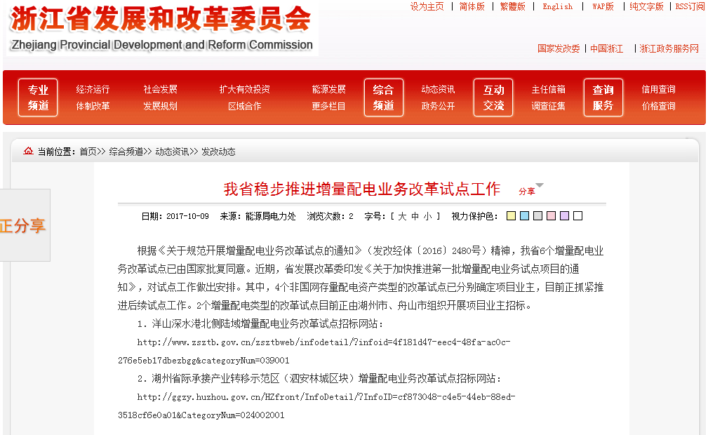 洋山深水港北側(cè)陸域和湖州省際承接產(chǎn)業(yè)轉(zhuǎn)移示范區(qū)(泗安林城區(qū)塊)2個(gè)增量配電業(yè)務(wù)試點(diǎn)項(xiàng)目的招標(biāo)工作也已經(jīng)啟動(dòng)。