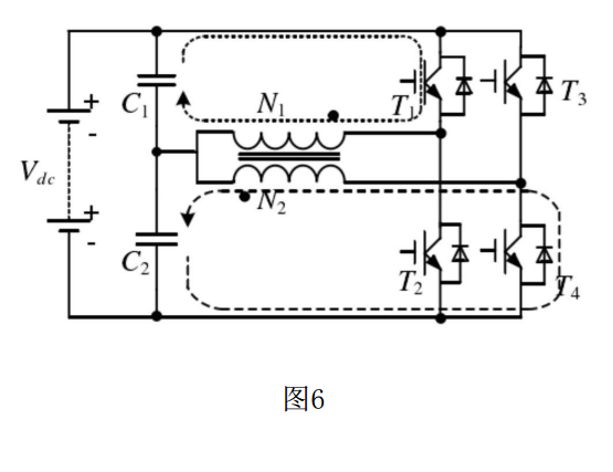 圖6為本發(fā)明的電路運行在⑤ 狀態(tài)時的電流方向圖;