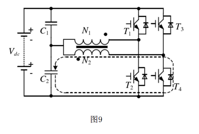 圖9為本發(fā)明的電路運行在⑧ 狀態(tài)時的電流方向圖;