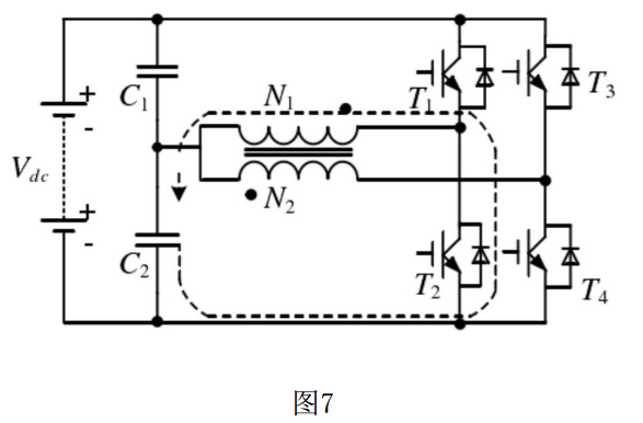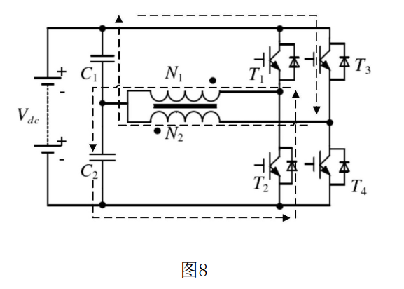 圖8為本發(fā)明的電路運行在⑦ 狀態(tài)時的電流方向圖;