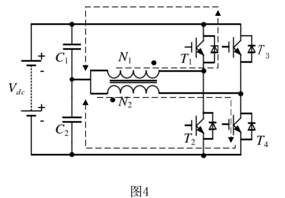 圖5為本發(fā)明的電路運行在④ 狀態(tài)時的電流方向圖;