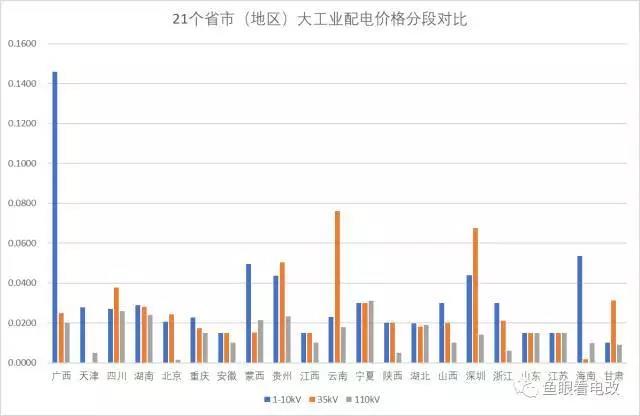 上面我們對(duì)各省市輸配電價(jià)有個(gè)宏觀認(rèn)識(shí),接下來(lái)我們重點(diǎn)分析對(duì)增量配電網(wǎng)有決定性作用的110kV及以下的配電價(jià)格,為了簡(jiǎn)化分析,我們只針對(duì)增量配電網(wǎng)里占比較大的大工業(yè)用戶(專線用戶)的配電價(jià)格進(jìn)行分析。
