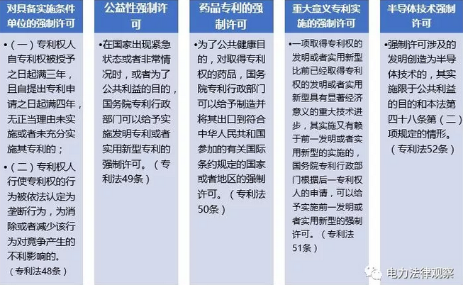 觀茶君腦洞大開之際,對我國專利“強制許可”制度的適用情形、范圍、程序進行了研究,以探討“強制許可“這一制度理念在增量配電改革中對電網(wǎng)企業(yè)存量資產(chǎn)處理上的適用借鑒性。