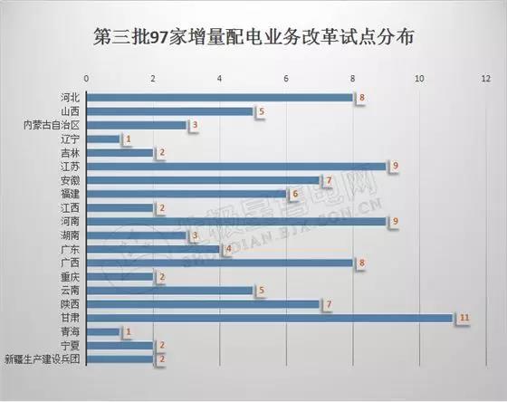 4月25日,國家發(fā)改委官網(wǎng)上公布了《第三批增量配電業(yè)務改革試點名單》,第三批次一共包含97個項目,分布在河北、江蘇、內(nèi)蒙古、遼寧、吉林等20個省市及新疆建設兵團。至此,增量配電業(yè)務改革試點增至292家。