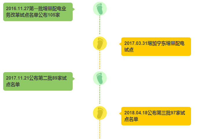 從時間上來看,從2016年11月27日公布第一批增量配電業(yè)務改革試點名單,到第二批公布的時間,相距時間整一年。而第三批試點公布的時間照比第二批2017年11月21日公布的時間相距僅5個月,時間提高了1倍多,不難看出,增量配電業(yè)務改革試點的推進速度正在不斷加速。