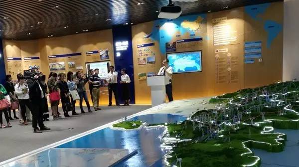 記者們在展示臺前聽取南網(wǎng)西電東送的情況介紹。