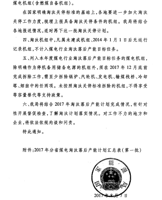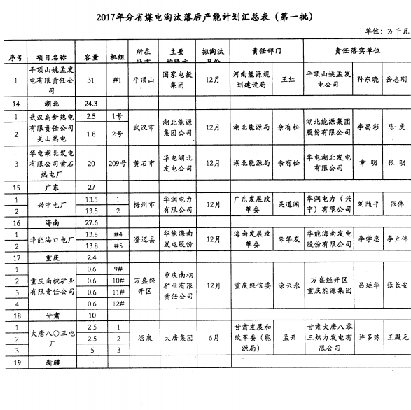 近日廣東省發(fā)展改革委發(fā)布了轉(zhuǎn)發(fā)國家能源局關(guān)于下達(dá)2017年煤電行業(yè)淘汰落后產(chǎn)能目標(biāo)任務(wù)(第一批)的通知。文件指出,按照國家有關(guān)要求,廣東省發(fā)改委牽頭制定了十三五期淘汰關(guān)停梅州粵嘉電力有限公司5-6號機(jī)、中山