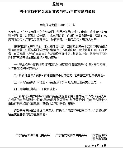 附件3:《關(guān)于支持有色金屬企業(yè)參與電力直接交易的通知》