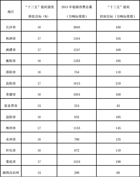 “十三五”各市州能耗總量和強(qiáng)度“雙控”目標(biāo)