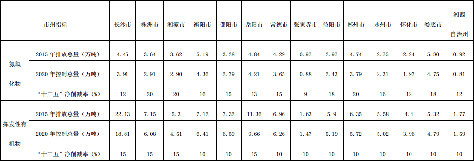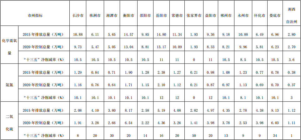 “十三五”各市州主要污染物總量控制目標(biāo)
