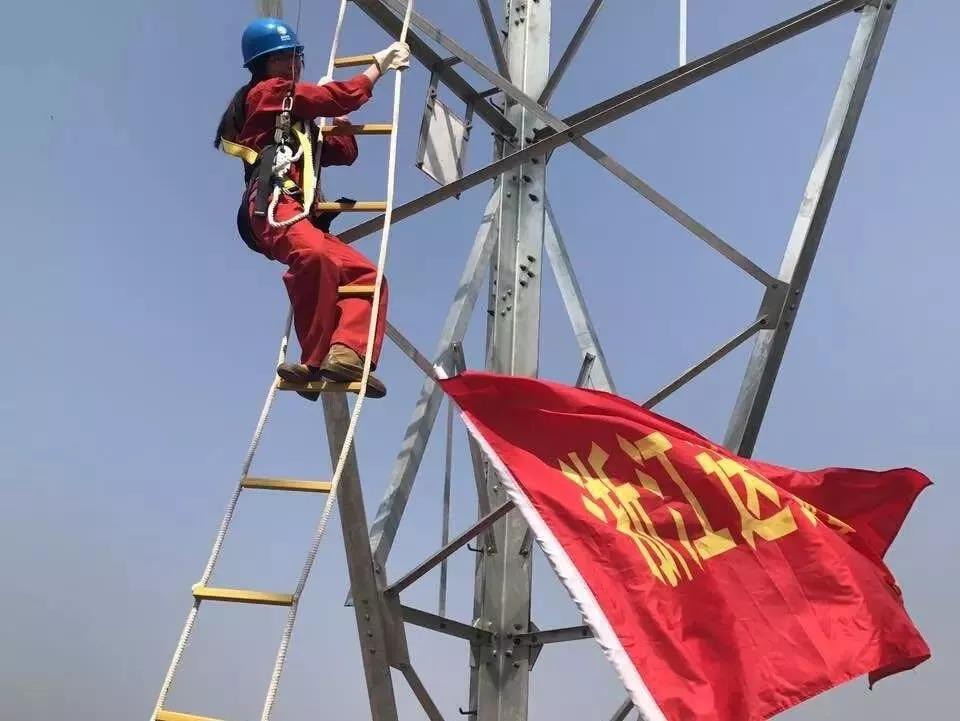 這位坐在高壓線上的美女可不是模特的擺拍,人家是地地道道的電網(wǎng)技術(shù)員。