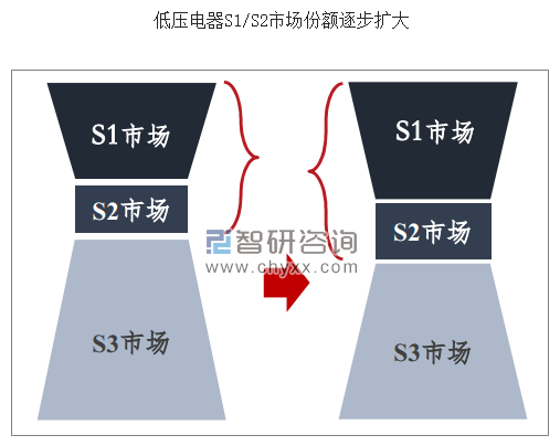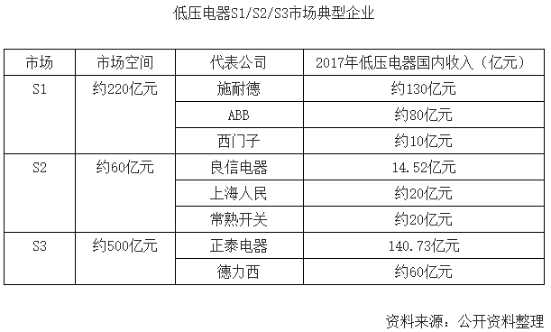 根據(jù)低壓電器的質(zhì)量與價格水平,低壓電器市場被劃分為S1/S2/S3市場:
