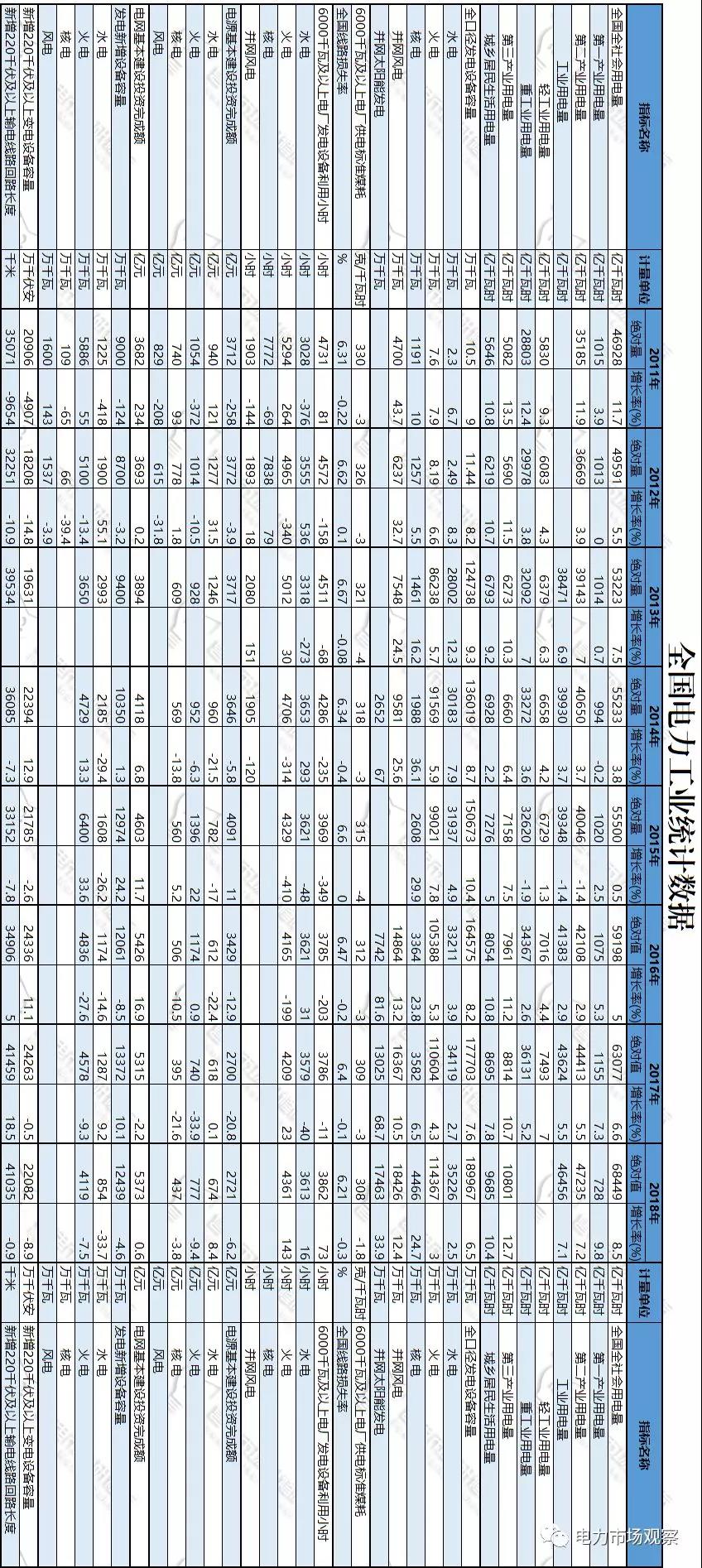 接下來請看2011-2018年全國電力工業(yè)統(tǒng)計數(shù)據(jù)對比: