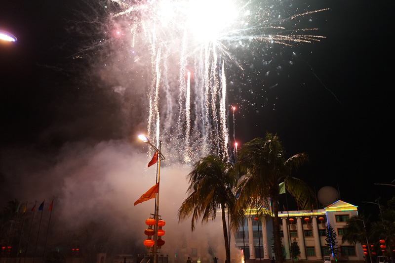 三沙元宵節(jié)晚的煙火與燈火。林丹丹 攝