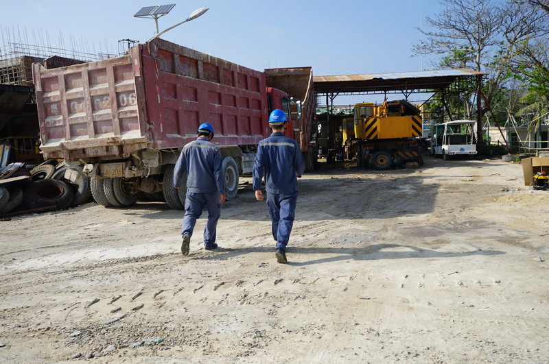 南方電網(wǎng)三沙供電局工作人員向下一個(gè)工作地點(diǎn)走去。林丹丹 攝
