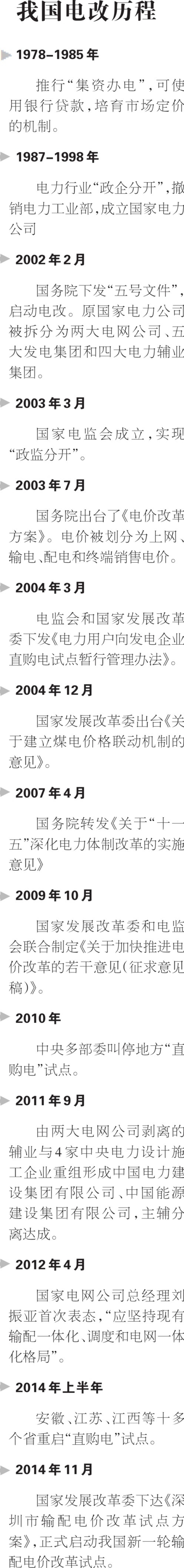 從以上信息不難看出,新電改的思路已經(jīng)不同于2002年“五號(hào)文件”中“廠網(wǎng)分開、主輔分離、輸配分開、競(jìng)價(jià)上網(wǎng)”的改革目標(biāo),改變意味著什么?中國(guó)經(jīng)濟(jì)導(dǎo)報(bào)記者通過(guò)采訪相關(guān)專家和企業(yè),帶讀者一起走進(jìn)中國(guó)電改,從發(fā)電側(cè)、輸配側(cè)和售電側(cè)3個(gè)環(huán)節(jié)全面了解電改的方方面面,探究電改的未來(lái)走向。