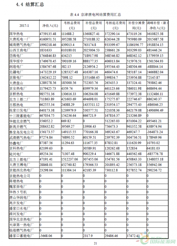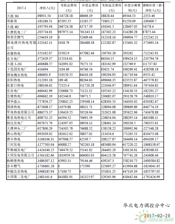 2017年1月京津唐電網(wǎng)《兩個細則》試運行結果