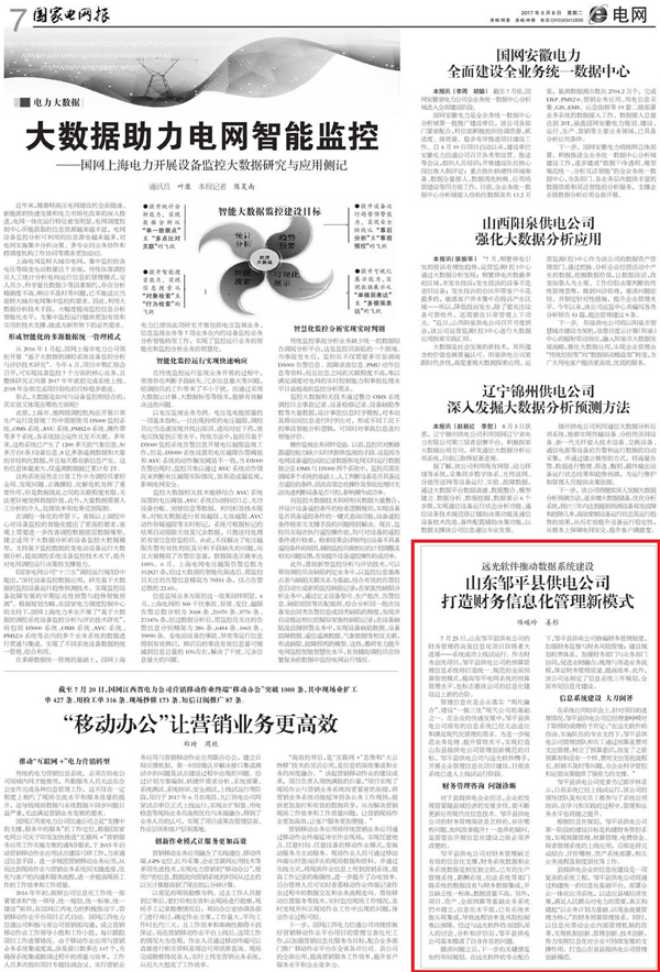 近日,山東鄒平縣供電公司的財(cái)務(wù)管理咨詢及信息化項(xiàng)目在遠(yuǎn)光軟件的支持下取得重大進(jìn)展——系統(tǒng)成功上線試運(yùn)行?!?a href="http://www.xiaobangrz.com/yqxxh/itsg/" target="_blank" class="keylink">國(guó)家電網(wǎng)報(bào)》對(duì)此進(jìn)行了報(bào)道,全文如下: