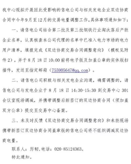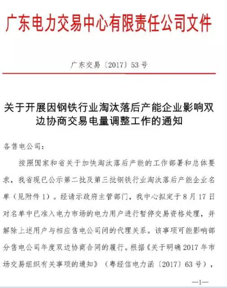 廣東發(fā)布關(guān)于開展因鋼鐵行業(yè)淘汰落后產(chǎn)能企業(yè)影響雙邊協(xié)商交易電量調(diào)整工作的通知