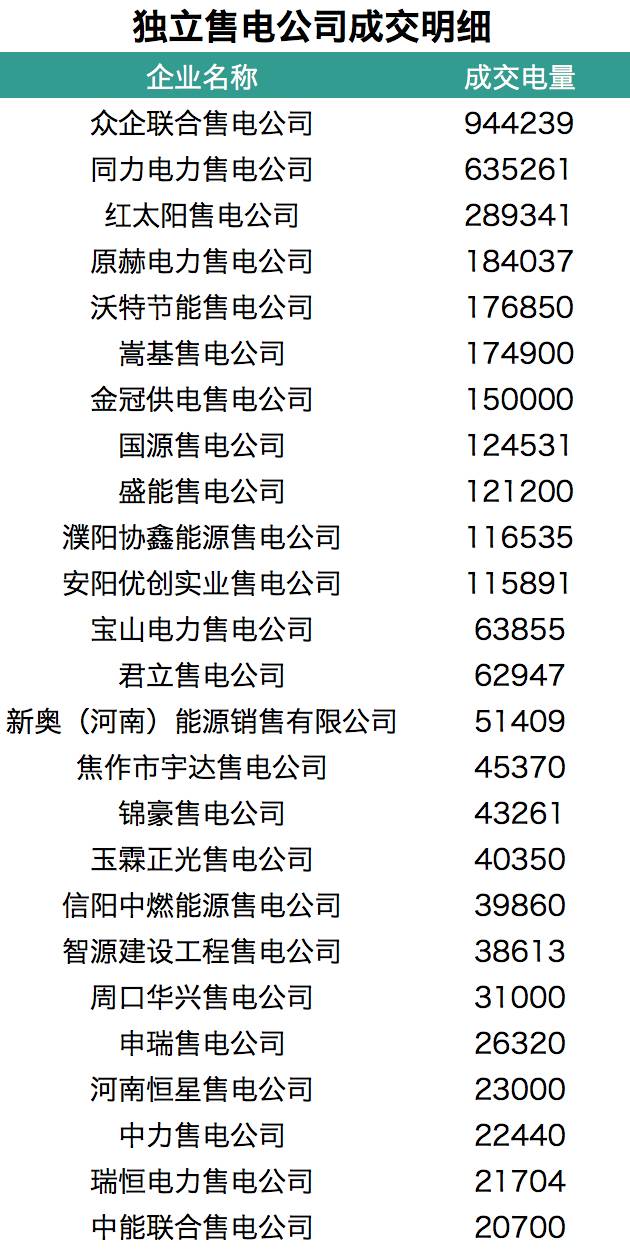說(shuō)完發(fā)電側(cè)的交易情況,再說(shuō)說(shuō)購(gòu)電側(cè)的成交情況,這次河南八大發(fā)電集團(tuán)旗下售電公司代理的電量不多只有858424兆瓦時(shí),占比只有10.336%,較上次37.8%有較大下滑。(詳細(xì)見(jiàn)下圖)
