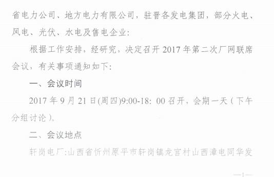 山西將召開2017年第二次廠網(wǎng)聯(lián)席會議
