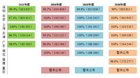 圖1-6 中國(guó)碳排放權(quán)交易試點(diǎn)2013-2016年度履約情況總結(jié)