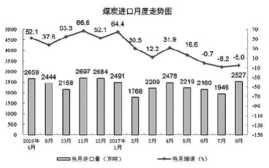 8月份,我國規(guī)模以上工業(yè)能源生產(chǎn)總體平穩(wěn),煤油氣電漲跌各異。其中,原煤產(chǎn)量增速有所放緩,原油生產(chǎn)降幅略有擴大,原油加工量增速明顯回升,天然氣生產(chǎn)持續(xù)快速增長,電力生產(chǎn)增速回落。截至7月底,煤炭去產(chǎn)能已經(jīng)完成全年目標(biāo)任務(wù)量的85%,對標(biāo)去年同期的47%,不管是“質(zhì)”還是“量”上均有較大幅度提升。減量置換指標(biāo)交易制度取得重大突破,全國參與指標(biāo)交易的煤炭產(chǎn)能超過5000萬噸,既引導(dǎo)過剩產(chǎn)能加快退出,又為發(fā)展優(yōu)質(zhì)產(chǎn)能騰出空間,為“十三五”乃至更長時期煤炭行業(yè)結(jié)構(gòu)優(yōu)化升級探索了可行路徑。