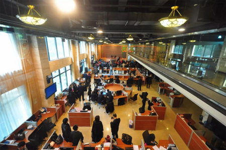 位于上海環(huán)境能源交易所內(nèi)的碳排放交易大廳