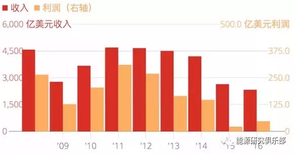 圖3 2008~2016年殼牌公司收入和利潤趨勢圖
