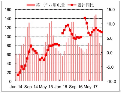 14-17 年第一產(chǎn)業(yè) 用電量(單位:億千瓦時(shí),% )