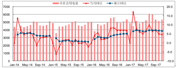 2014-2017 年我國全社會(huì)用電量情況(單位:億千瓦時(shí),% )